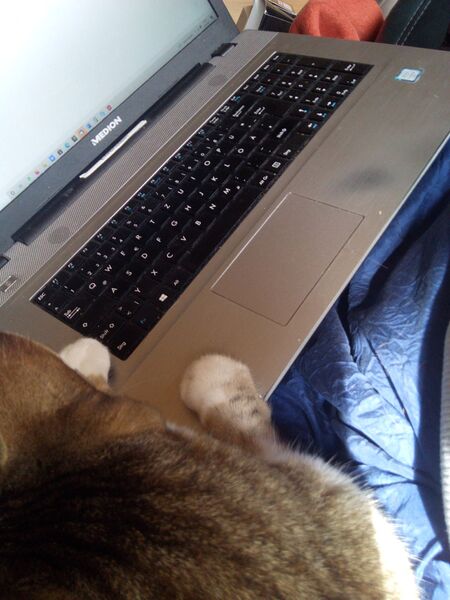 Auch der Kater der Nachbarn will helfen. Funktioniert nur nicht so ganz.